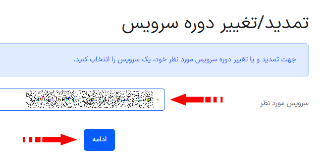 • انتخاب سرویس مورد نظر از لیست و کلیک بر روی ادامه
